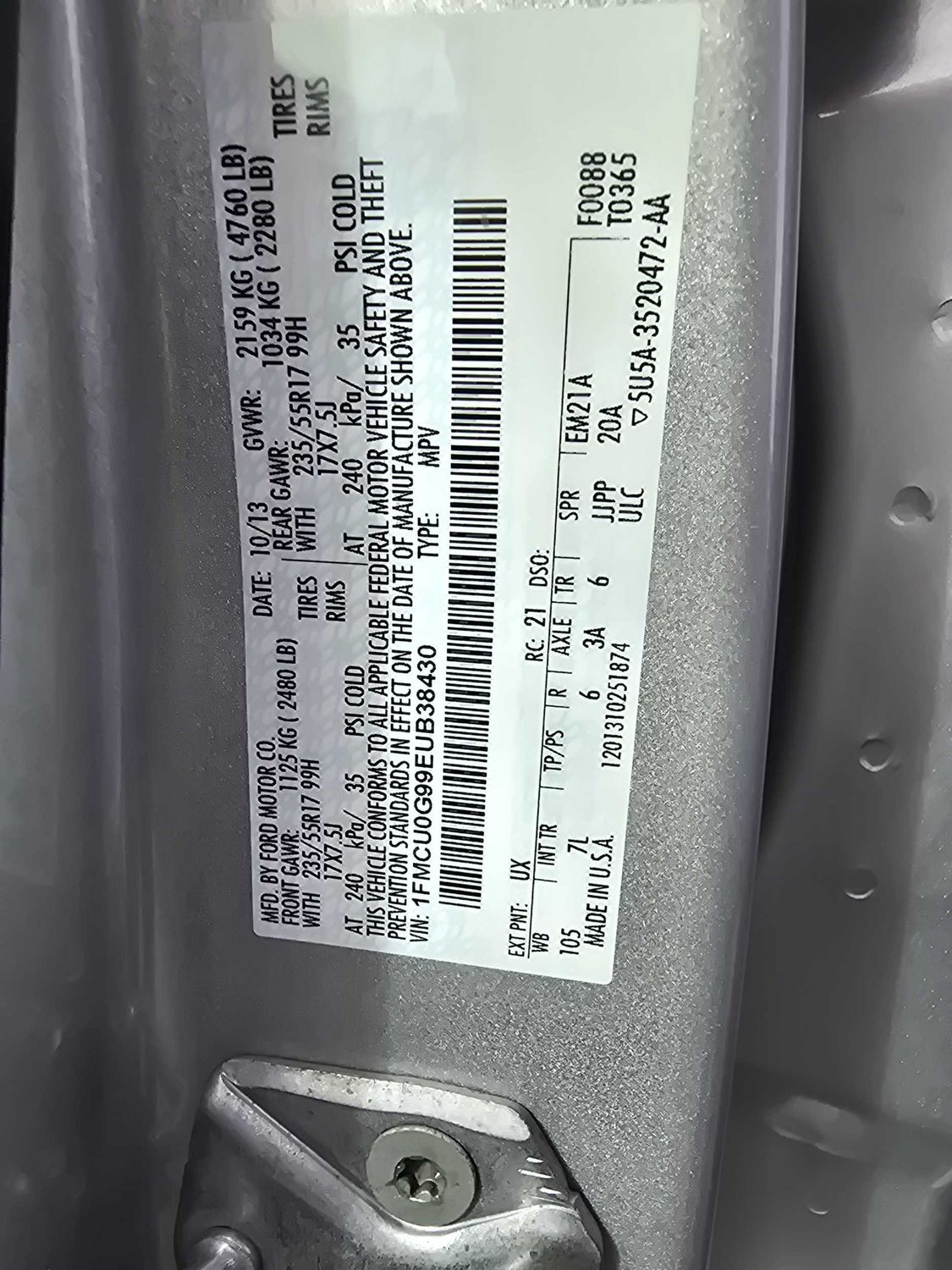 Cargo floor type: Carpet cargo area floor