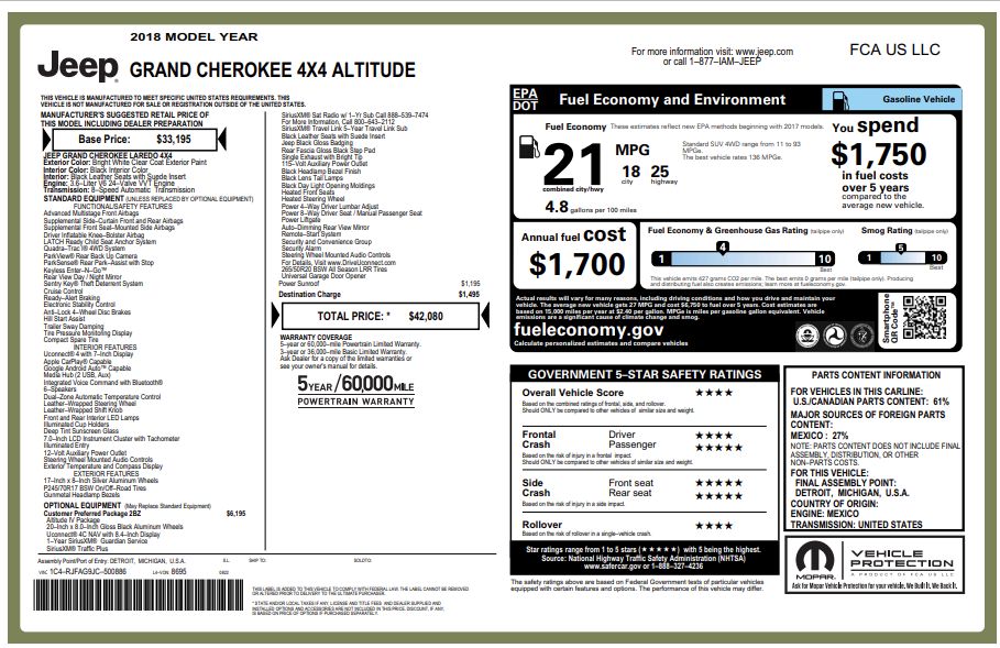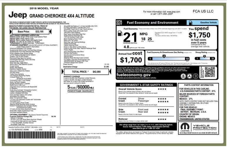 Front seatback upholstery: Plastic front seatback upholstery